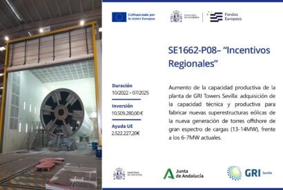 El objetivo principal de la inversión es aumentar la capacidad productiva de la planta de GRI Towers Sevilla de manera que se dote con los medios necesarios para la fabricación de las nuevas superestructuras eólicas […]
